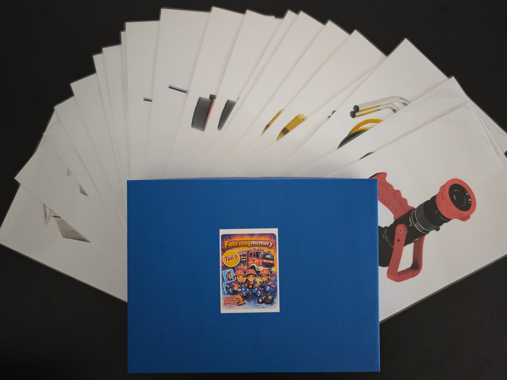 Das Feuerwehrfahrzeug-Memory von jugendfeuerwehrshop.de verbindet klassisches Memory-Spiel mit echter Feuerwehrpraxis!